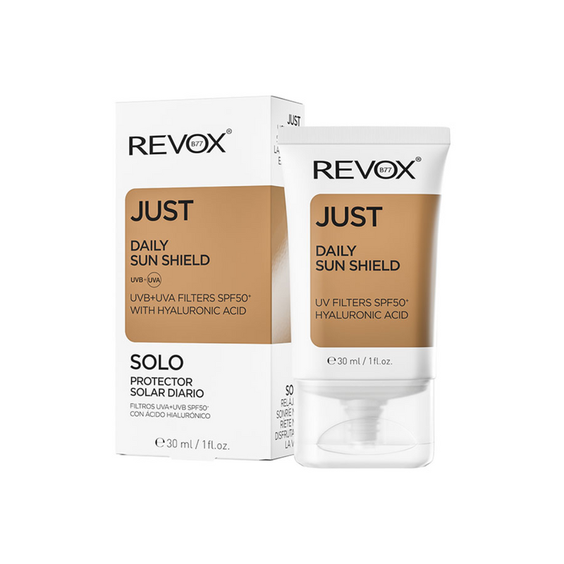 Protector solar diario SPF50+ con ácido hialurónico de Revox. Esta crema ligera para uso diario es todo en uno. Protege la piel de los rayos UVA que causan el envejecimiento, de los rayos UVB que causan quemaduras, y al mismo tiempo que la hidrata y la suaviza. Gracias a su suave textura, penetra en la piel rápidamente dejándola suave y no grasa creando una base perfecta para el maquillaje.